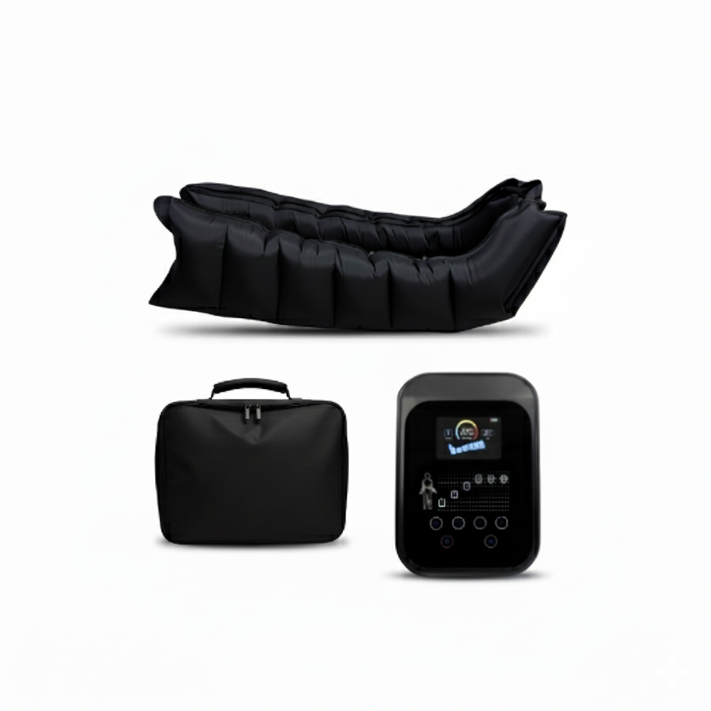 La pressothérapie (compression pneumatique séquentielle) applique des pressions d’air contrôlées sur les jambes par chambres successives.